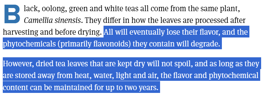 Unlike food, tea can last a long time.
